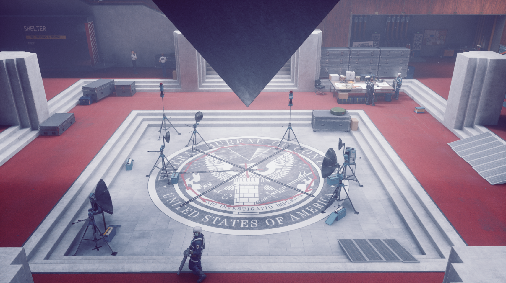 具体不同的区域也有不同的光照,比如Maintenance 就是偏黄色光,虽然建筑颜色没变。Central Executive是白光,Containment光照暗淡,再后来的Foundation和Investigation Sector也是白光,不过环境亮度不一样。Investigation Sector是Altered World Events主题,“黑暗”是一种邪恶能量什么的,光照是作为一种杀敌的武器,所以很多地图一开始都很暗,必须要打开光源驱逐黑暗。
